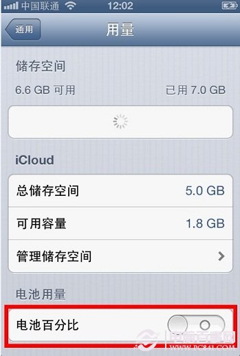 iPhone电池电量百分比显示设置方法五、用手指点击右边的开关,将其打开。这时打开状态显示为蓝色,此时可以看到 iPhone 上方状态栏中电量图形右边已经出现了百分比显示了,如下图所示: